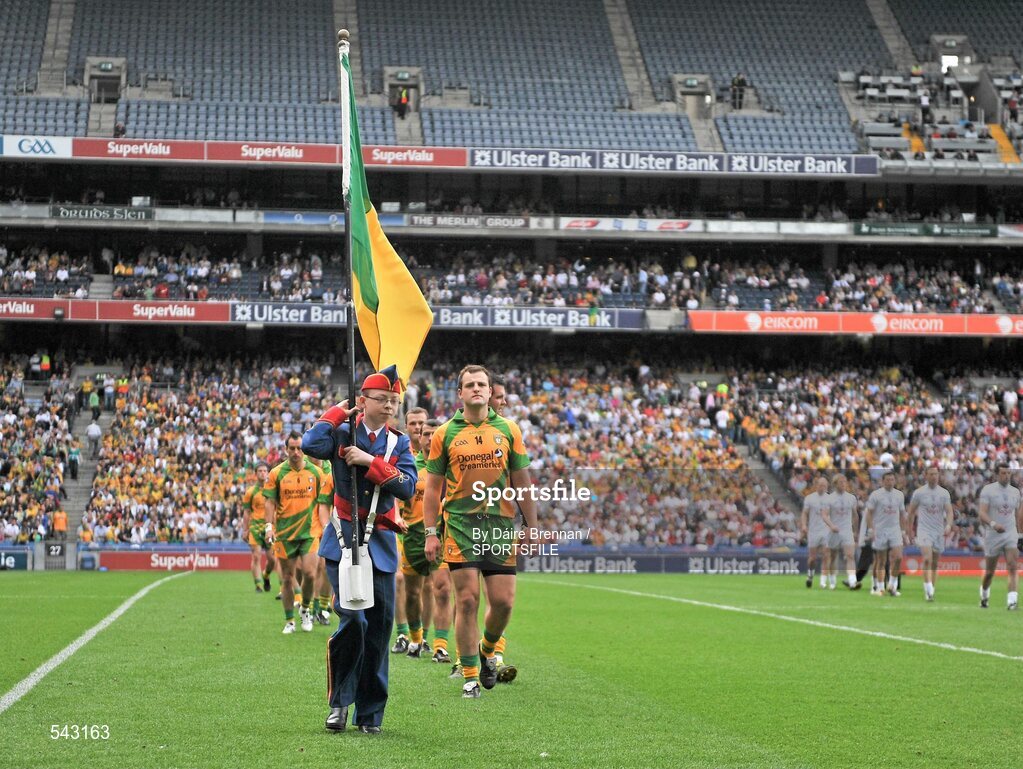 30 July 2011; Donegal captain Michael Murphy leads his team during the pre-match parade. GAA Football All-Ireland Senior Championship Quarter-Final, Donegal v Kildare, Croke Park, Dublin. Picture credit: Dáire Brennan / SPORTSFILE