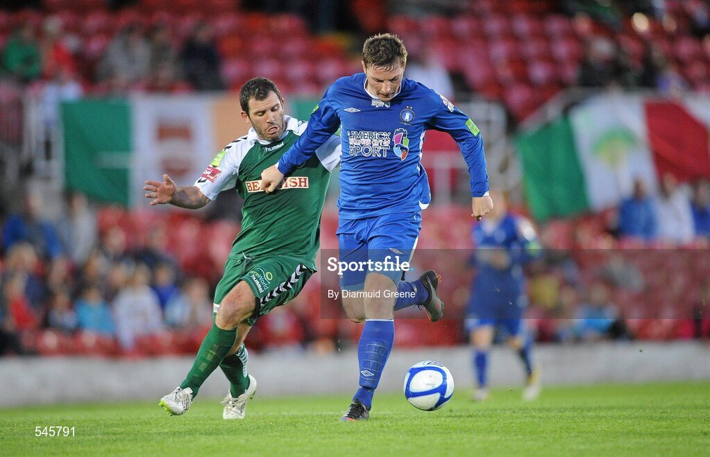 8 August 2011; Denis Behan, Limerick FC, in action against Greg O'Halloran, Cork City. EA Sports Cup Semi-Final, Cork City v Limerick FC, Turner’s Cross, Cork. Picture credit: Diarmuid Greene / SPORTSFILE