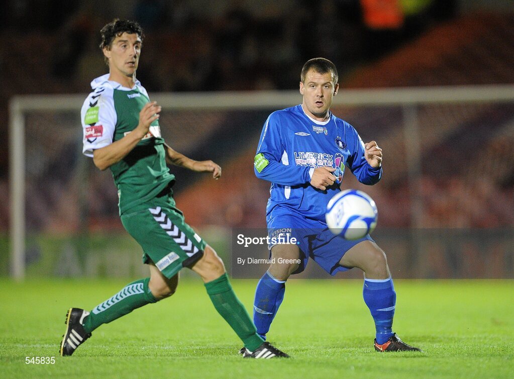 8 August 2011; John Frost, Limerick FC, in action against Vinny Sullivan, Cork City. EA Sports Cup Semi-Final, Cork City v Limerick FC, Turner’s Cross, Cork. Picture credit: Diarmuid Greene / SPORTSFILE
