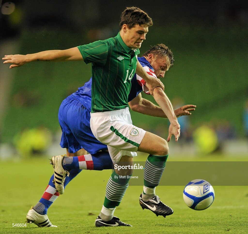 10 August 2011; Darren O’Dea, Republic of Ireland, in action against Ivica Olic, Croatia. International Soccer Friendly, Republic of Ireland v Croatia, Aviva Stadium, Lansdowne Road, Dublin. Picture credit: Matt Browne / SPORTSFILE