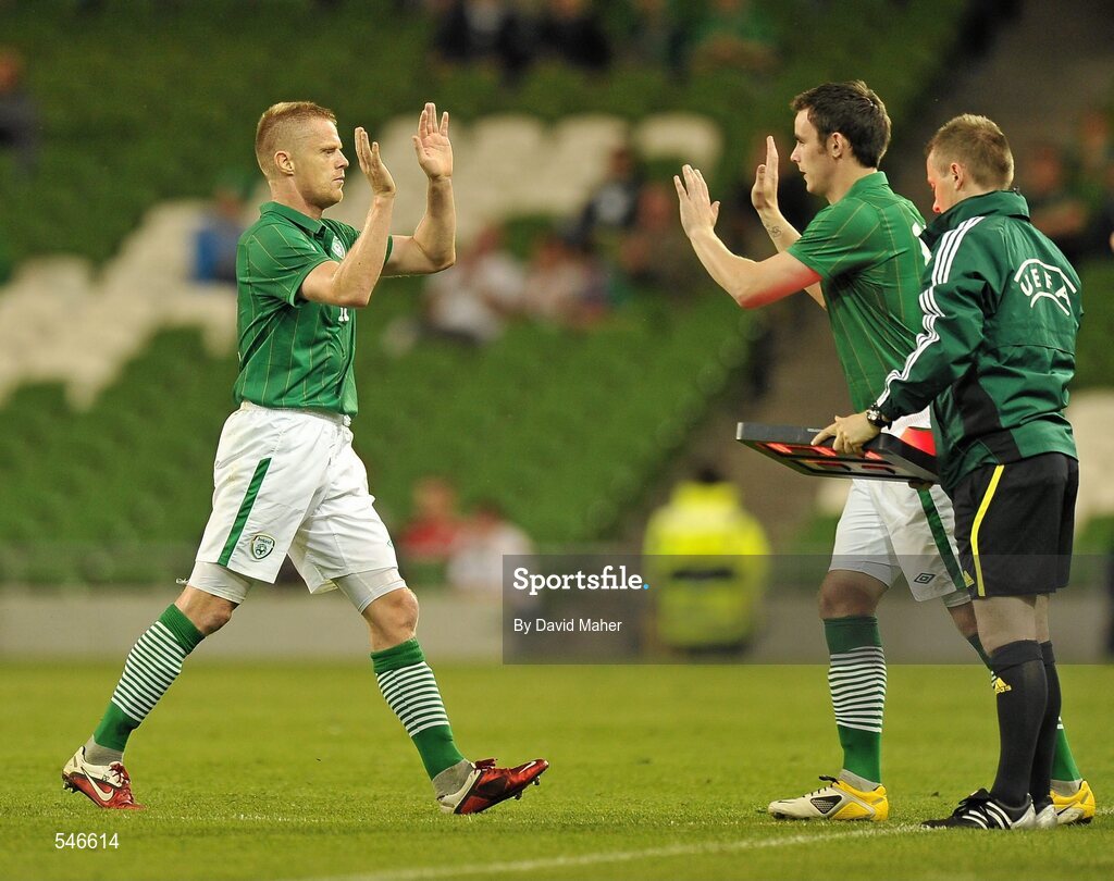 10 August 2011; Damien Duff, Republic of Ireland, is replaced by team-mate Keith Treacy during the second half. International Soccer Friendly, Republic of Ireland v Croatia, Aviva Stadium, Lansdowne Road, Dublin. Picture credit: David Maher / SPORTSFILE