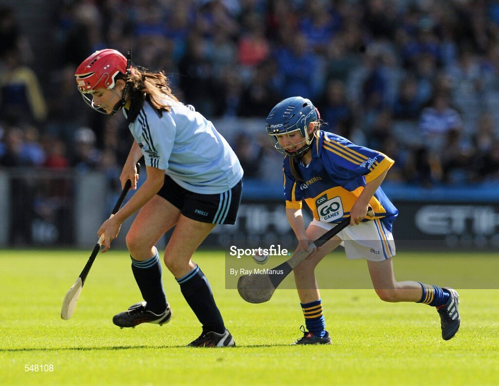 14 August 2011; Norette Casey, Ardfert N.S., Ardfert, Co. Kerry, Tipperary, in action against Danielle Grehan, Our Lady’s Abbey N.S., Adare, Co. Limerick, Dublin. Go Games Exhibition - Sunday 14th August 2011, Croke Park, Dublin. Picture credit: Ray McManus / SPORTSFILE