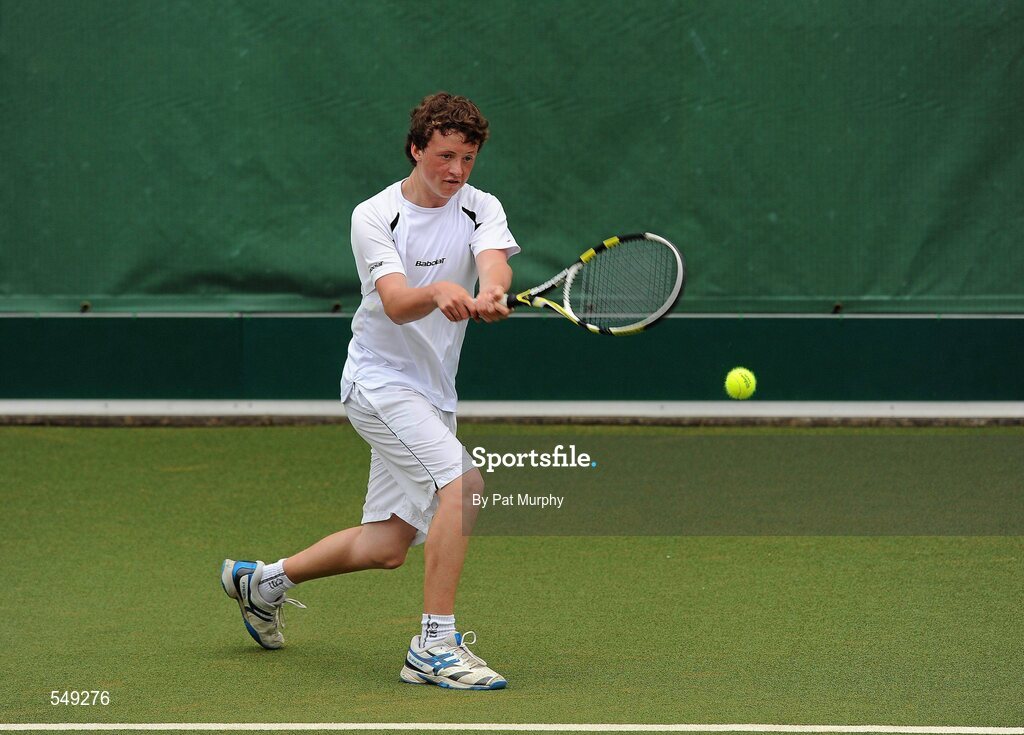 20 August 2011; Matthew McClurg, Dublin, in action against Niall Casey during the U14 Boys Singles Final of the William Fry Junior Lawn Tennis Championships. Matthew McClurg v Niall Casey. The Championships took place from Sunday, 14th August, to Saturday, 20th August, where over 380 aspiring tennis champions, from across the country, competed in 20 competitions, playing over 500 matches. Fitzwilliam Lawn Tennis Club, Appian Way, Dublin. Picture credit: Pat Murphy / SPORTSFILE