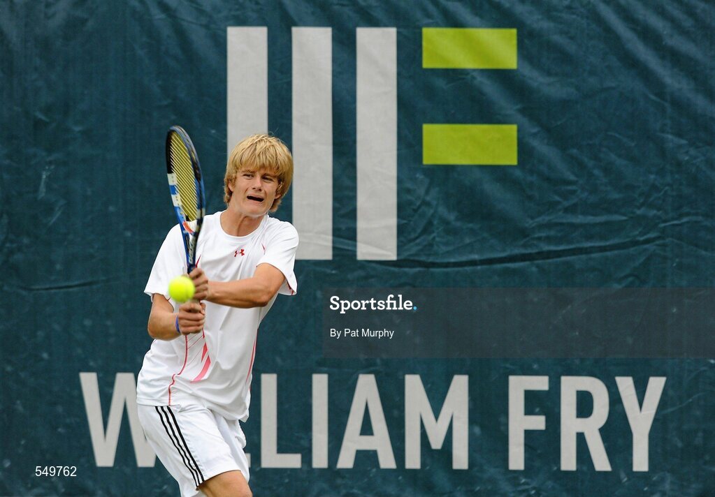 20 August 2011; Odhran O'Sullivan Hamill, Dublin, in action during his doubles match against Ross Hurley and Rossa Glancy, Dublin, during the U18 Boys Doubles Final of the William Fry Junior Lawn Tennis Championships. Ross Hurley and Rossa Glancy, Dublin, v Jamie Bourne and Odhran O'Sullivan Hamill, Dublin. The Championships took place from Sunday, 14th August, to Saturday, 20th August, where over 380 aspiring tennis champions, from across the country, competed in 20 competitions, playing over 500 matches. Fitzwilliam Lawn Tennis Club, Appian Way, Dublin. Picture credit: Pat Murphy / SPORTSFILE