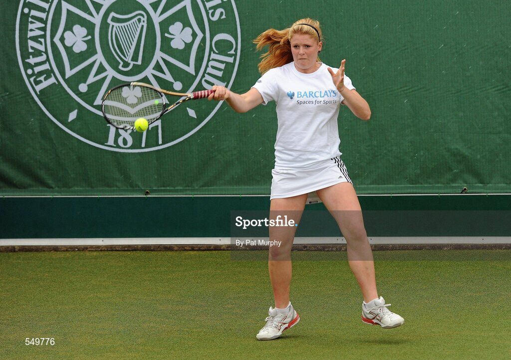 20 August 2011; Megan McGreevy, Dublin, in action during her Doubles match against Rachel Daly and Nicola Drummy, Dublin, during the U16 Girls Doubles Final of the William Fry Junior Lawn Tennis Championships. Caroline Lynch and Megan McGreevy, Dublin v Rachel Daly and Nicola Drummy, Dublin. The Championships took place from Sunday, 14th August, to Saturday, 20th August, where over 380 aspiring tennis champions, from across the country, competed in 20 competitions, playing over 500 matches. Fitzwilliam Lawn Tennis Club, Appian Way, Dublin. Picture credit: Pat Murphy / SPORTSFILE