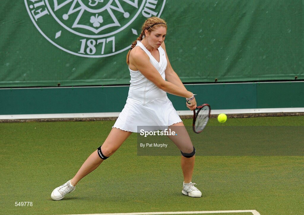 20 August 2011; Caroline Lynch, Dublin, in action during her Doubles match against Rachel Daly and Nicola Drummy, Dublin, during the U16 Girls Doubles Final of the William Fry Junior Lawn Tennis Championships. Caroline Lynch and Megan McGreevy, Dublin v Rachel Daly and Nicola Drummy, Dublin. The Championships took place from Sunday, 14th August, to Saturday, 20th August, where over 380 aspiring tennis champions, from across the country, competed in 20 competitions, playing over 500 matches. Fitzwilliam Lawn Tennis Club, Appian Way, Dublin. Picture credit: Pat Murphy / SPORTSFILE