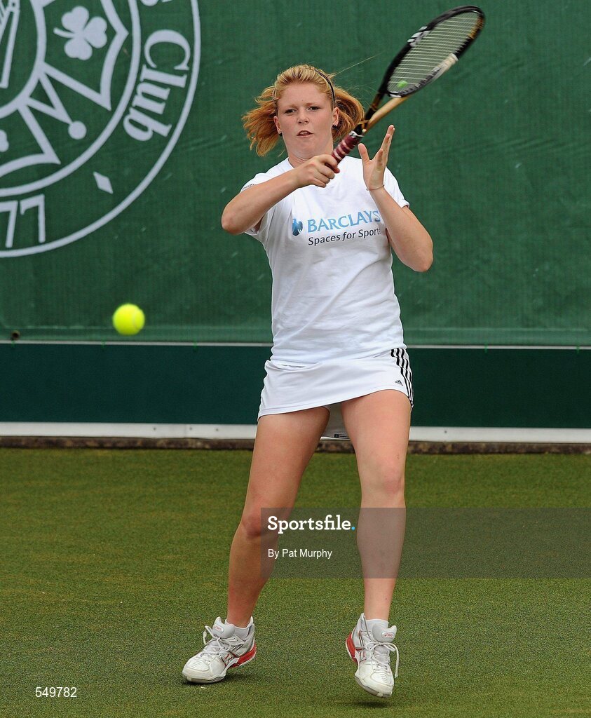 20 August 2011; Megan McGreevy, Dublin, in action during her Doubles match against Rachel Daly and Nicola Drummy, Dublin, during the U16 Girls Doubles Final of the William Fry Junior Lawn Tennis Championships. Caroline Lynch and Megan McGreevy, Dublin v Rachel Daly and Nicola Drummy, Dublin. The Championships took place from Sunday, 14th August, to Saturday, 20th August, where over 380 aspiring tennis champions, from across the country, competed in 20 competitions, playing over 500 matches. Fitzwilliam Lawn Tennis Club, Appian Way, Dublin. Picture credit: Pat Murphy / SPORTSFILE