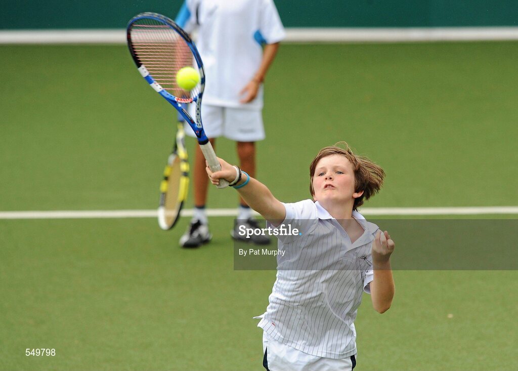 20 August 2011; Ben McClurg, Dublin, in action against Sean Collins and Michael O'Callaghan, Limerick, during the U12 Boys Doubles Final of the William Fry Junior Lawn Tennis Championships. Ben McClurg and Robert McCollum, Dublin, v Sean Collins and Michael O'Callaghan, Limerick, The Championships took place from Sunday, 14th August, to Saturday, 20th August, where over 380 aspiring tennis champions, from across the country, competed in 20 competitions, playing over 500 matches. Fitzwilliam Lawn Tennis Club, Appian Way, Dublin. Picture credit: Pat Murphy / SPORTSFILE