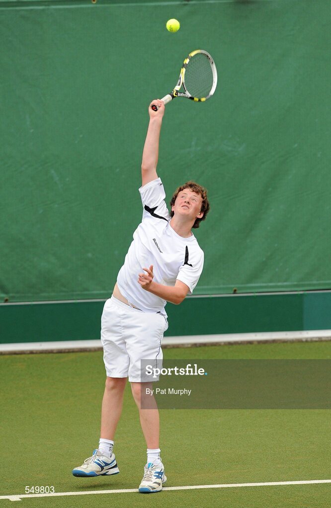20 August 2011; Matthew McClurg, Dublin, in action against Niall Casey, Cork, during the U14 Boys Singles Final of the William Fry Junior Lawn Tennis Championships. Matthew McClurg, Dublin v Niall Casey, Cork. The Championships took place from Sunday, 14th August, to Saturday, 20th August, where over 380 aspiring tennis champions, from across the country, competed in 20 competitions, playing over 500 matches. Fitzwilliam Lawn Tennis Club, Appian Way, Dublin. Picture credit: Pat Murphy / SPORTSFILE