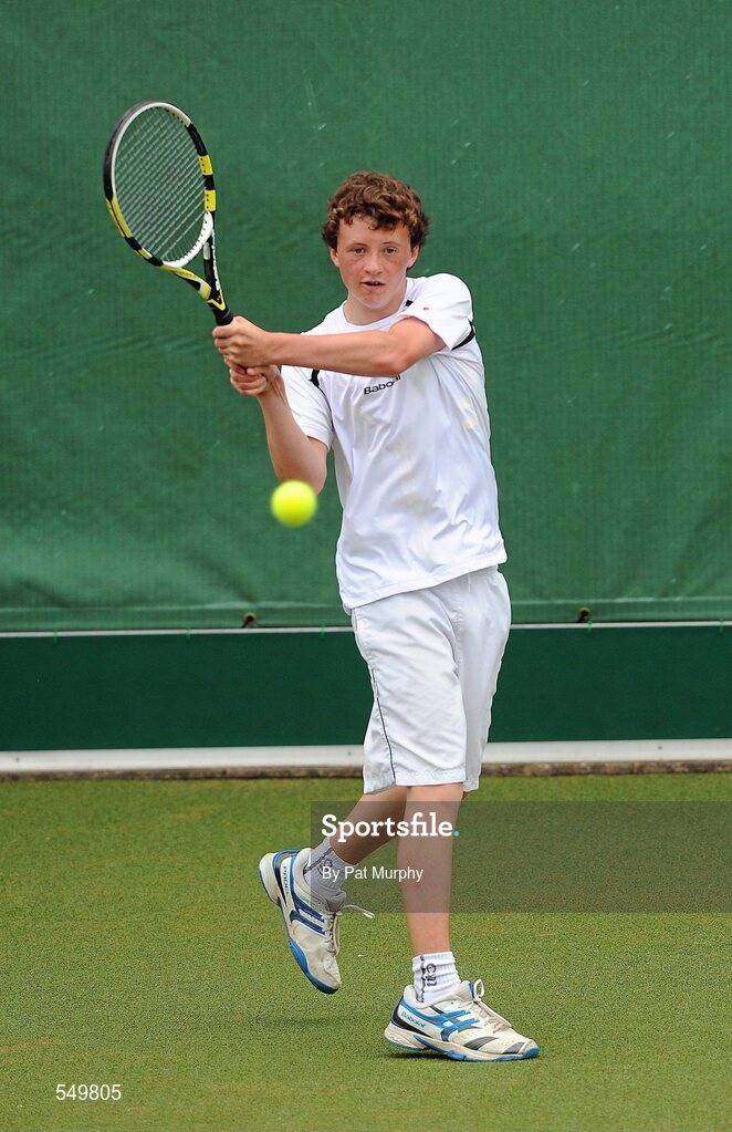 20 August 2011; Matthew McClurg, Dublin, in action against Niall Casey, Cork, during the U14 Boys Singles Final of the William Fry Junior Lawn Tennis Championships. Matthew McClurg, Dublin v Niall Casey, Cork. The Championships took place from Sunday, 14th August, to Saturday, 20th August, where over 380 aspiring tennis champions, from across the country, competed in 20 competitions, playing over 500 matches. Fitzwilliam Lawn Tennis Club, Appian Way, Dublin. Picture credit: Pat Murphy / SPORTSFILE