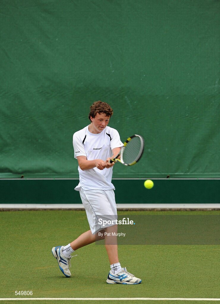 20 August 2011; Matthew McClurg, Dublin, in action against Niall Casey, Cork, during the U14 Boys Singles Final of the William Fry Junior Lawn Tennis Championships. Matthew McClurg, Dublin v Niall Casey, Cork. The Championships took place from Sunday, 14th August, to Saturday, 20th August, where over 380 aspiring tennis champions, from across the country, competed in 20 competitions, playing over 500 matches. Fitzwilliam Lawn Tennis Club, Appian Way, Dublin. Picture credit: Pat Murphy / SPORTSFILE