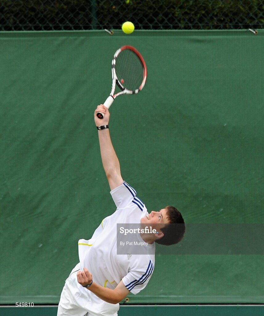 20 August 2011; Peter Mimnagh-Fleming, Dublin, in action during his doubles match against Peter Bothwell and Alan Stubbs, Dublin, during the U16 Boys Doubles Final of the William Fry Junior Lawn Tennis Championships. Robert Dudley and peter Mimnagh-Fleming, Dublin, v Peter Bothwell and Aaron Stubbs, Dublin. The Championships took place from Sunday, 14th August, to Saturday, 20th August, where over 380 aspiring tennis champions, from across the country, competed in 20 competitions, playing over 500 matches. Fitzwilliam Lawn Tennis Club, Appian Way, Dublin. Picture credit: Pat Murphy / SPORTSFILE
