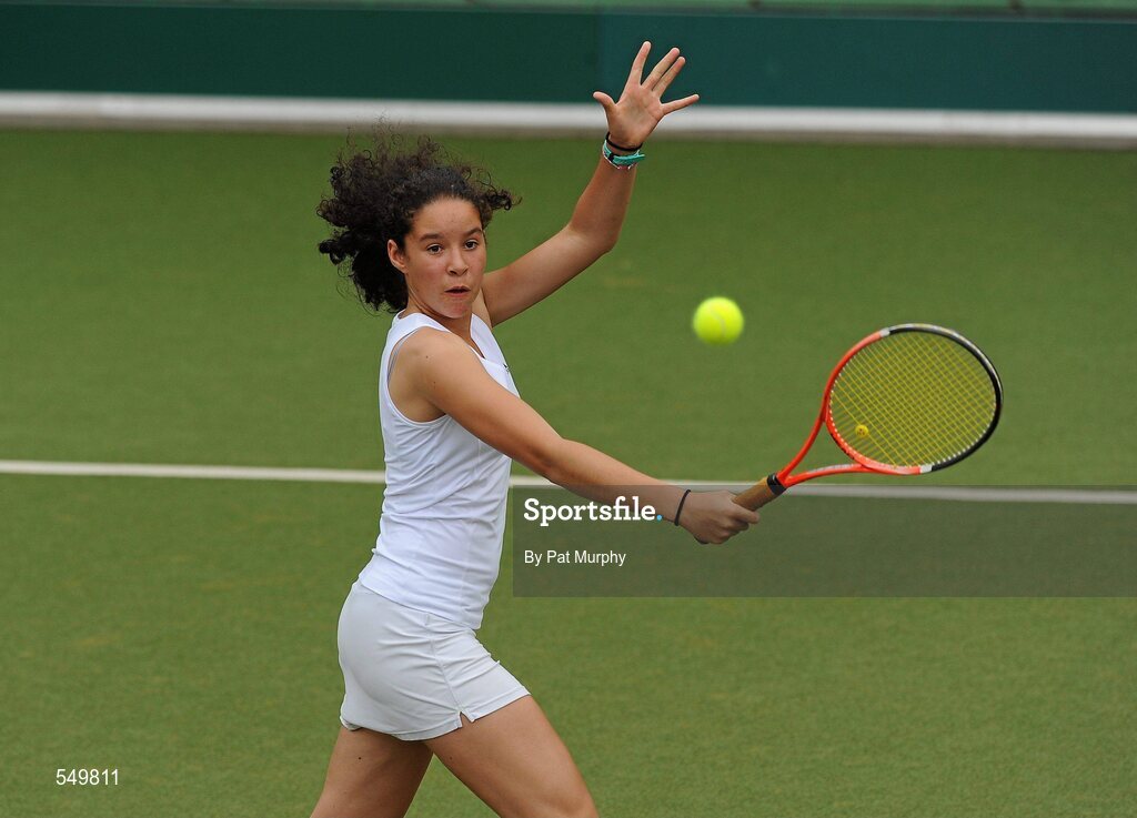 20 August 2011; Lucy Octave, Dublin, in action against Emily Daly and Marie-Louise O'Callaghan, Dublin, during the U14 Girls Doubles Final of the William Fry Junior Lawn Tennis Championships. Emily Daly and Marie-Louise O'Callaghan, Dublin, v Lucy Octave, Dublin, and Karola Bejenaru, Romania. The Championships took place from Sunday, 14th August, to Saturday, 20th August, where over 380 aspiring tennis champions, from across the country, competed in 20 competitions, playing over 500 matches. Fitzwilliam Lawn Tennis Club, Appian Way, Dublin. Picture credit: Pat Murphy / SPORTSFILE