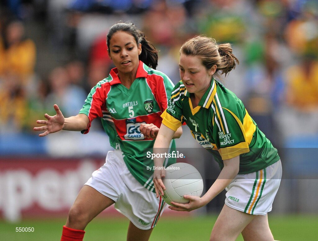 21 August 2011; Fiona Tully, Roxboro N.S., Derrane, Roscommon, right, in action against Ketlyn Fonseca, Presentations N.S. Fermoy, Cork. Go Games Exhibition - Sunday 21st August 2011, Croke Park, Dublin. Picture credit: Brian Lawless / SPORTSFILE