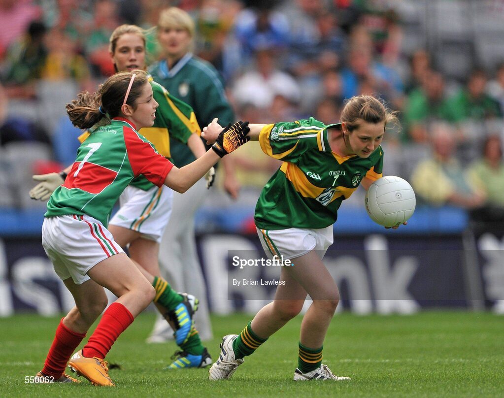 21 August 2011; Fiona Tully, Roxboro NS, Derrane, Roscommon, in action against Emma Gildea, St. Mary's NS, Dungarvan, Waterford, left. Go Games Exhibition - Sunday 21st August 2011, Croke Park, Dublin. Picture credit: Brian Lawless / SPORTSFILE