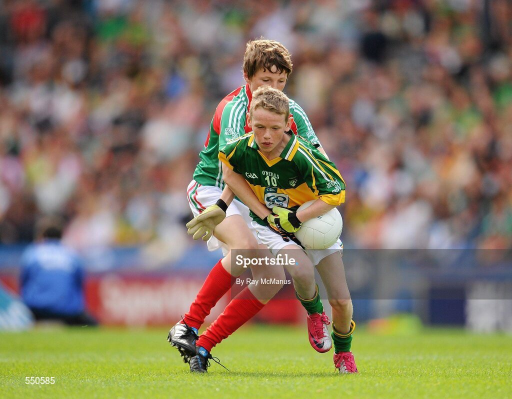21 August 2011; David Greaney, Corrandulla N.S., Corrandulla, Co. Galway, in action against Conor Diskin, Barnacarroll N.S., Claremorris, Co. Mayo. Go Games Exhibition - Sunday 21st August 2011, Croke Park, Dublin. Picture credit: Ray McManus / SPORTSFILE