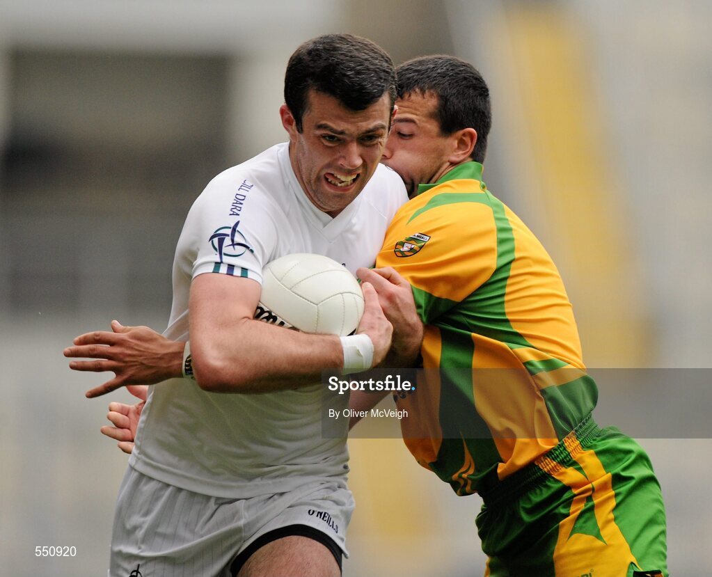 30 July 2011; Padraig O'Neill, Kildare, in action against Frank McGlynn, Donegal. GAA Football All-Ireland Senior Championship Quarter-Final, Donegal v Kildare, Croke Park, Dublin. Picture credit: Oliver McVeigh / SPORTSFILE