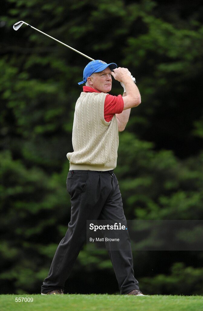 9 September 2011; Former Dublin footballer Barney Rock, from Stabannon Parnells GAA Club, Co. Louth, watches his tee shot from the 7th tee box during the 12th Annual All-Ireland GAA Golf Challenge 2011 Finals. Waterford Castle Golf and Country Club, Co. Waterford. Picture credit: Matt Browne / SPORTSFILE