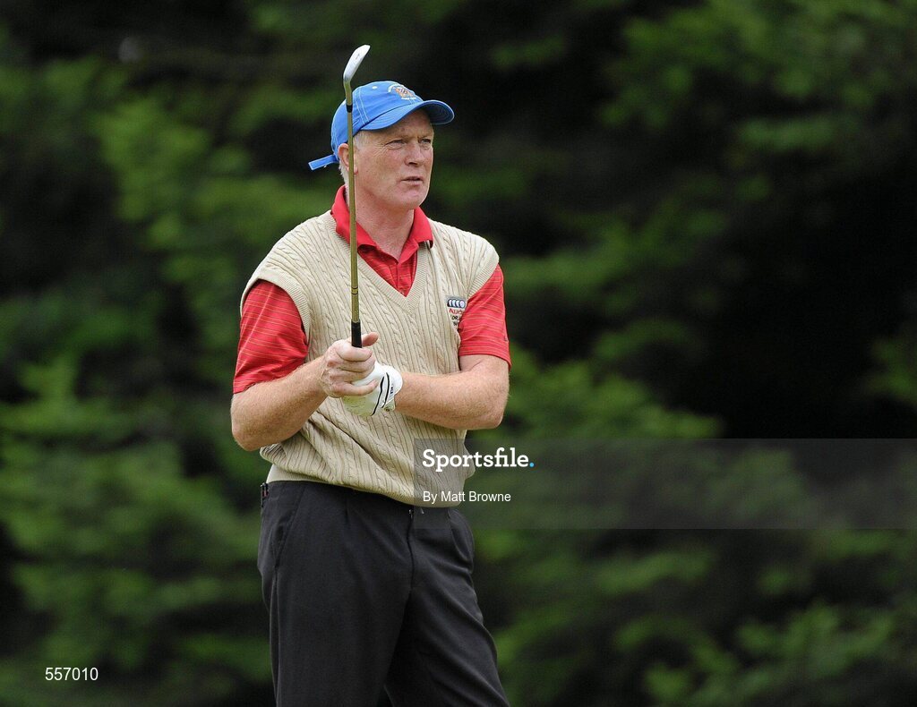 9 September 2011; Former Dublin footballer Barney Rock, from Stabannon Parnells GAA Club, Co. Louth, watches his tee shot from the 7th tee box during the 12th Annual All-Ireland GAA Golf Challenge 2011 Finals. Waterford Castle Golf and Country Club, Co. Waterford. Picture credit: Matt Browne / SPORTSFILE