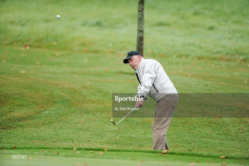 9 September 2011; Ger Donnelly, from Fr. O'Neills GAA Club, Ahavine, Ballymacoda, Co. Cork, pitches onto the 12th green during the 12th Annual All-Ireland GAA Golf Challenge 2011 Finals. Waterford Castle Golf and Country Club, Co. Waterford. Picture credit: Matt Browne / SPORTSFILE