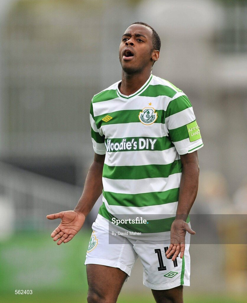 25 September 2011; Rohan Ricketts, Shamrock Rovers, celebrates after scoring his side's second goal. Airtricity League Premier Division, Shamrock Rovers v Bray Wanderers, Tallaght Stadium, Tallaght, Dublin. Picture credit: David Maher / SPORTSFILE