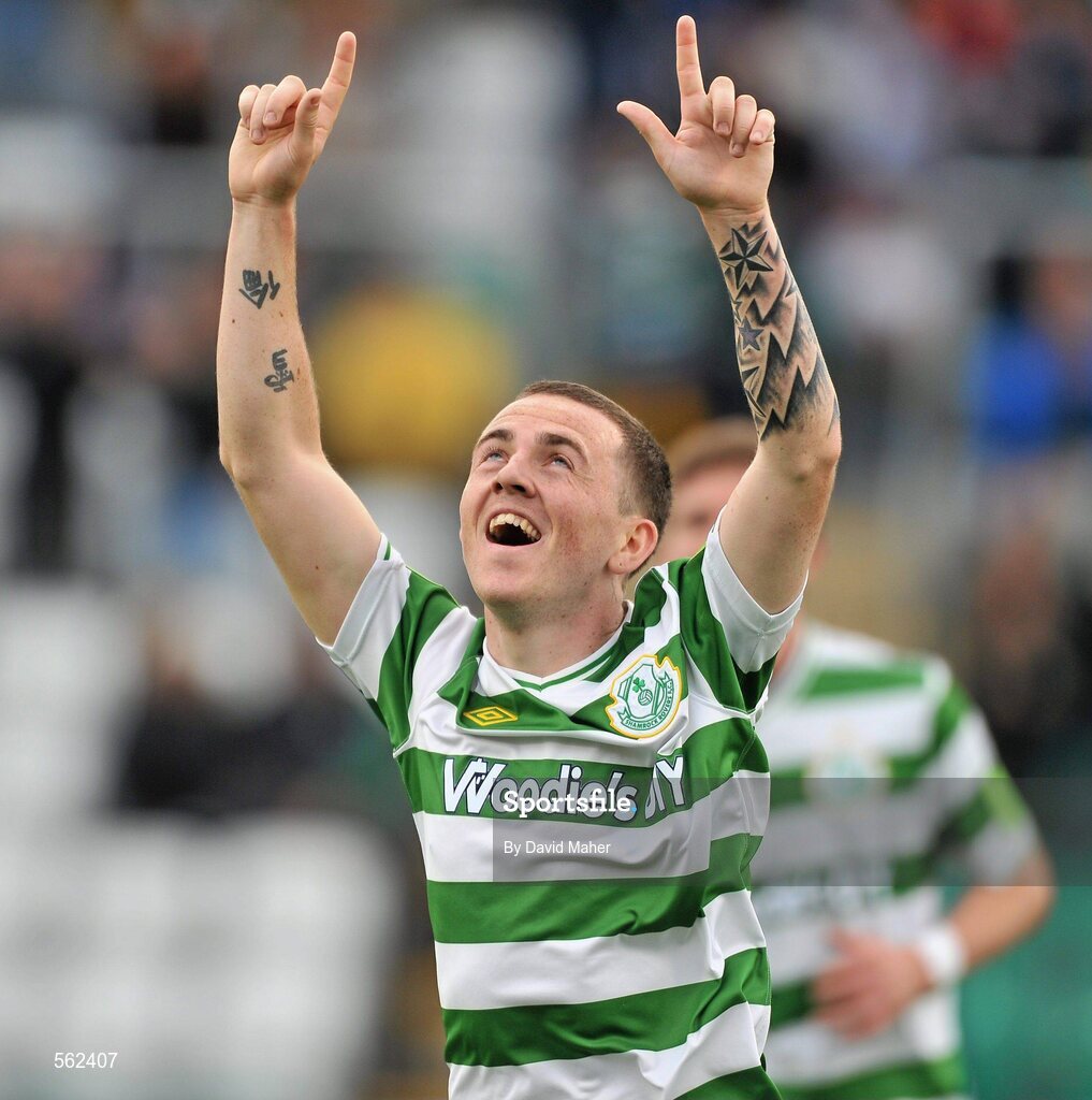 25 September 2011; Gary McCabe, Shamrock Rovers, celebrates after scoring his side's third goal. Airtricity League Premier Division, Shamrock Rovers v Bray Wanderers, Tallaght Stadium, Tallaght, Dublin. Picture credit: David Maher / SPORTSFILE