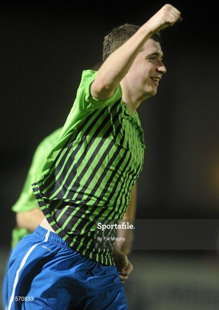 29 October 2011; Jordan Keegan, Monaghan United, celebrates after scoring his side's first goal. Airtricity League First Division, Athlone Town v Monaghan United, Lisseywollen, Athlone, Co. Westmeath. Picture credit: Pat Murphy / SPORTSFILE