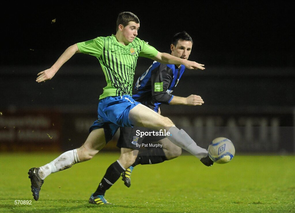29 October 2011; Jordan Keegan, Monaghan United, in action against Declan Fallon, Athlone Town. Airtricity League First Division, Athlone Town v Monaghan United, Lisseywollen, Athlone, Co. Westmeath. Picture credit: Pat Murphy / SPORTSFILE