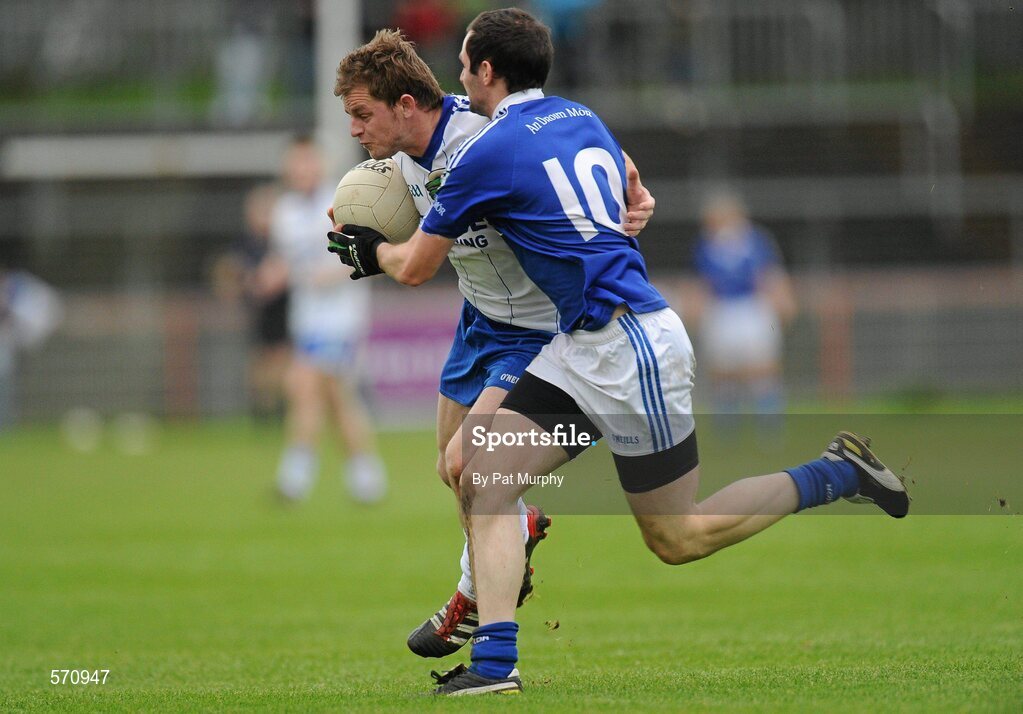 30 October 2011; Raymond Wilkinson, Ballinderry Shamrocks, in action against Ronan McNabb, Dromore St Dympna’s. AIB Ulster GAA Football Senior Club Championship Quarter-Final, Dromore St Dympna’s v Ballinderry Shamrocks, Healy Park, Omagh, Co. Tyrone. Picture credit: Pat Murphy / SPORTSFILE