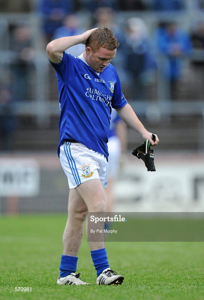 30 October 2011; Adrian McCaffrey, Dromore St Dympna’s, leaves the field after being sent off by Referee Martin Higgins. AIB Ulster GAA Football Senior Club Championship Quarter-Final, Dromore St Dympna’s v Ballinderry Shamrocks, Healy Park, Omagh, Co. Tyrone. Picture credit: Pat Murphy / SPORTSFILE