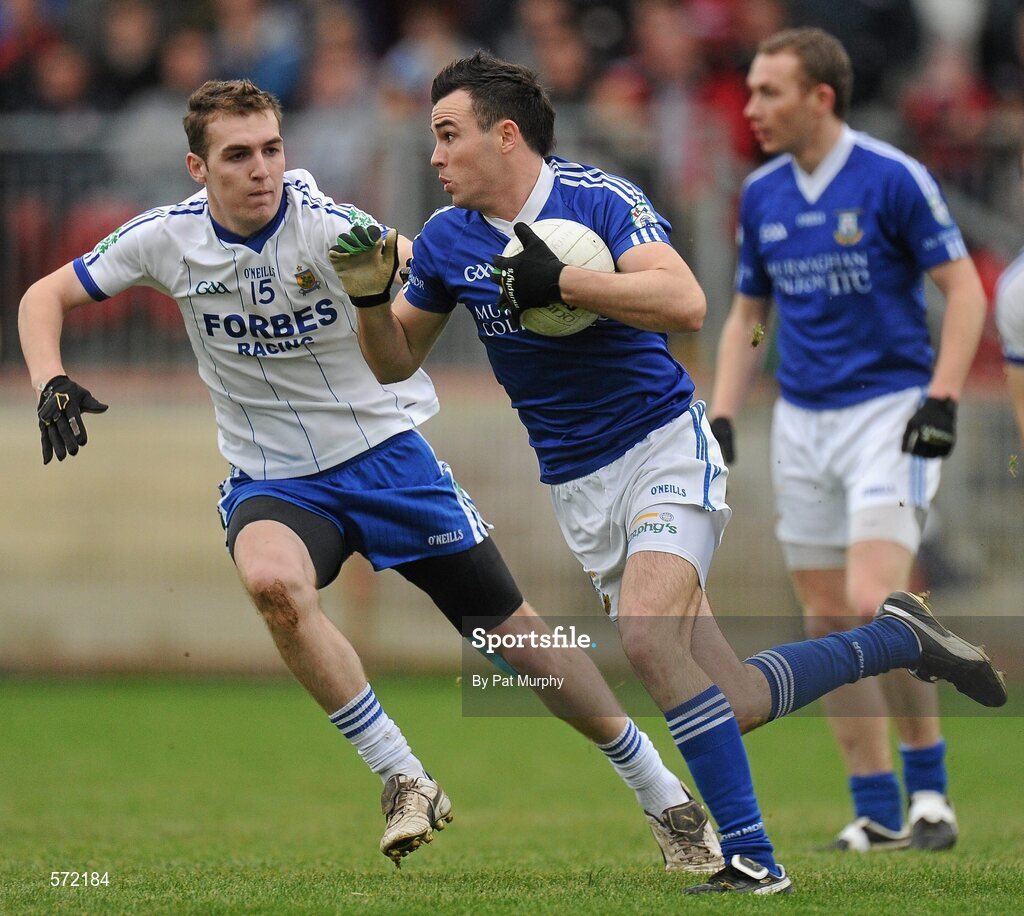 30 October 2011; Cathal McCarron, Dromore St Dympna’s, in action against Ryan Bell, Ballinderry Shamrocks. AIB Ulster GAA Football Senior Club Championship Quarter-Final, Dromore St Dympna’s v Ballinderry Shamrocks, Healy Park, Omagh, Co. Tyrone. Picture credit: Pat Murphy / SPORTSFILE