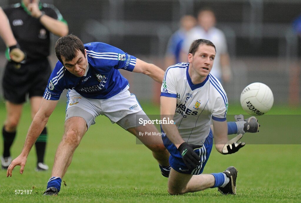 30 October 2011; Enda Muldoon, Ballinderry Shamrocks, in action against Hugh McNulty, Dromore St Dympna’s. AIB Ulster GAA Football Senior Club Championship Quarter-Final, Dromore St Dympna’s v Ballinderry Shamrocks, Healy Park, Omagh, Co. Tyrone. Picture credit: Pat Murphy / SPORTSFILE