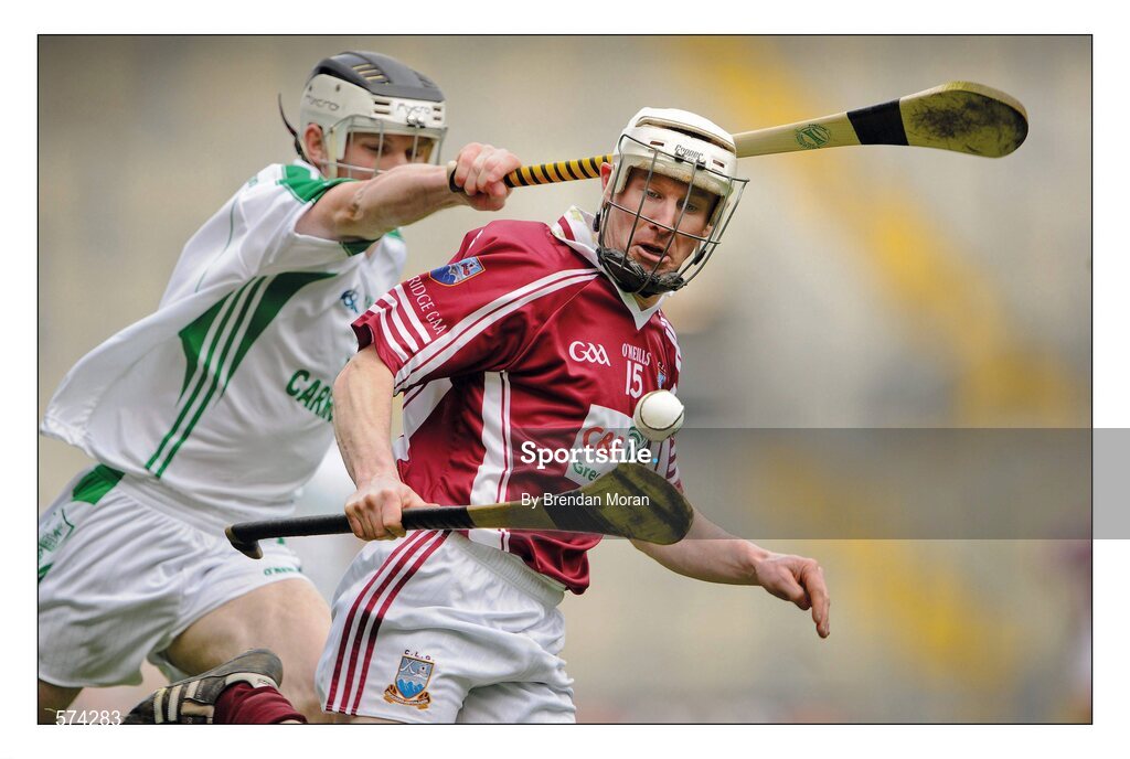 17 March 2011; Shorten the grip, put your body between him and the ball. Paul Coen of Clarinbridge stays one step ahead of Brian Kelly of O’Loughlin Gaels. Picture credit; Brendan Moran / SPORTSFILE