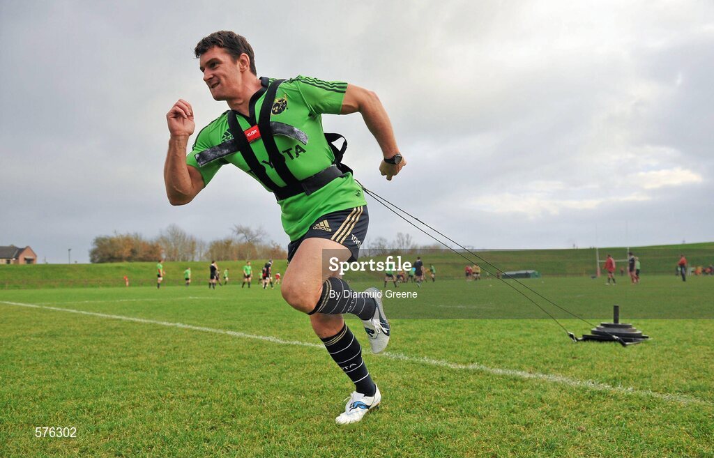 15 November 2011; Munster's David Wallace trains separately from his team-mates during squad training ahead of their Heineken Cup Pool 1 Round 2, match against Castres Olympique on Saturday November 19th. Munster Rugby Squad Training, University of Limerick, Limerick. Picture credit: Diarmuid Greene / SPORTSFILE