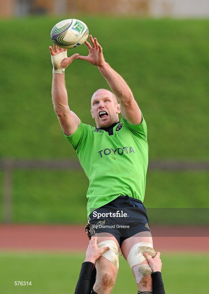 15 November 2011; Munster's Paul O'Connell wins possession in the lineout during squad training ahead of their Heineken Cup Pool 1 Round 2, match against Castres Olympique on Saturday November 19th. Munster Rugby Squad Training, University of Limerick, Limerick. Picture credit: Diarmuid Greene / SPORTSFILE