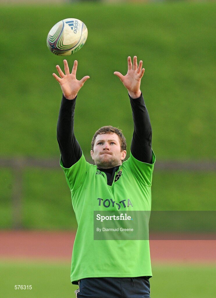 15 November 2011; Munster's Donnacha Ryan wins possession in the lineout during squad training ahead of their Heineken Cup Pool 1 Round 2, match against Castres Olympique on Saturday November 19th. Munster Rugby Squad Training, University of Limerick, Limerick. Picture credit: Diarmuid Greene / SPORTSFILE