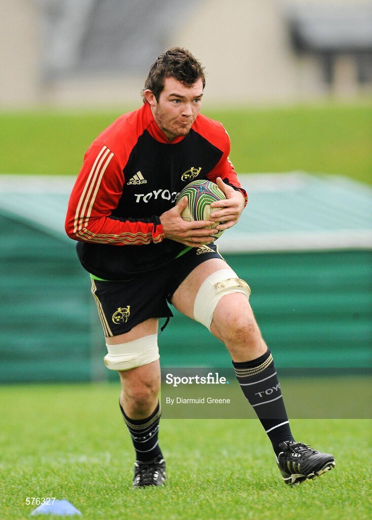 15 November 2011; Munster's Peter O'Mahony in action during squad training ahead of their Heineken Cup Pool 1 Round 2, match against Castres Olympique on Saturday November 19th. Munster Rugby Squad Training, University of Limerick, Limerick. Picture credit: Diarmuid Greene / SPORTSFILE