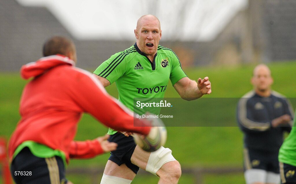 15 November 2011; Munster's Paul O'Connell in action during squad training ahead of their Heineken Cup Pool 1 Round 2, match against Castres Olympique on Saturday November 19th. Munster Rugby Squad Training, University of Limerick, Limerick. Picture credit: Diarmuid Greene / SPORTSFILE