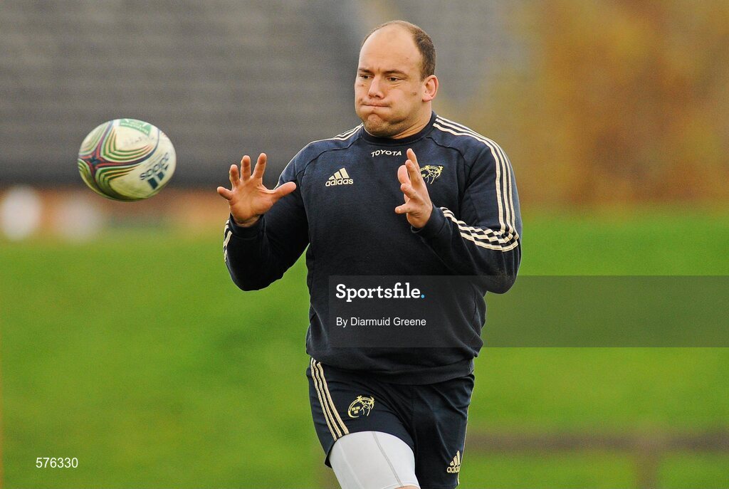 15 November 2011; Munster's BJ Botha in action during squad training ahead of their Heineken Cup Pool 1 Round 2, match against Castres Olympique on Saturday November 19th. Munster Rugby Squad Training, University of Limerick, Limerick. Picture credit: Diarmuid Greene / SPORTSFILE