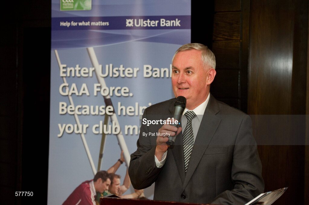 21 November 2011; Uachtarán CLG Criostóir Ó Cuana speaking at the launch of 'A Season of Sunday's 2011' sponsored by Ulster Bank. Launch of 'A Season of Sundays 2011', The Croke Park Hotel, Jones' Road, Dublin. Picture credit: Pat Murphy / SPORTSFILE