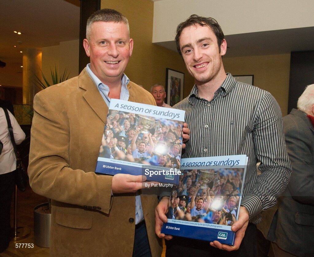 21 November 2011; Former Dublin football manager Paul Caffrey and Dublin hurler Ryan Dwyer, right, at the launch of 'A Season of Sunday's 2011' sponsored by Ulster Bank. Launch of 'A Season of Sundays 2011', The Croke Park Hotel, Jones' Road, Dublin. Picture credit: Pat Murphy / SPORTSFILE