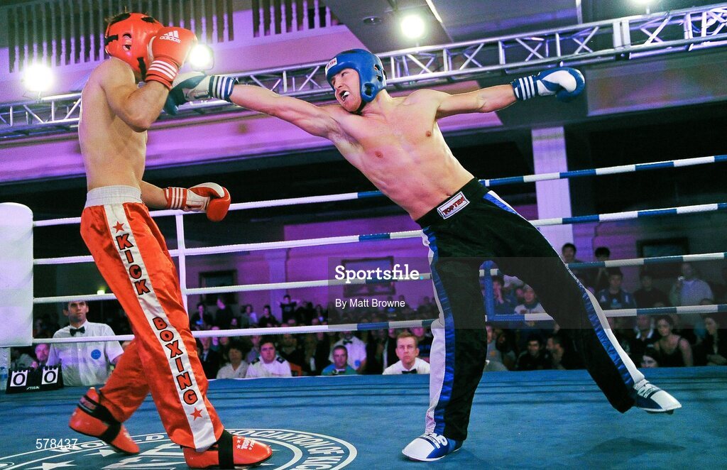 26 November 2011; Brian Brosnan, right, Galway, in action against Stelyan Aveamidi, Kazakhstan, during their 71 kg full contact bout. 2011 WAKO World Kickboxing Championships, Citywest Conference Centre, Saggart, Dublin. Picture credit: Matt Browne / SPORTSFILE