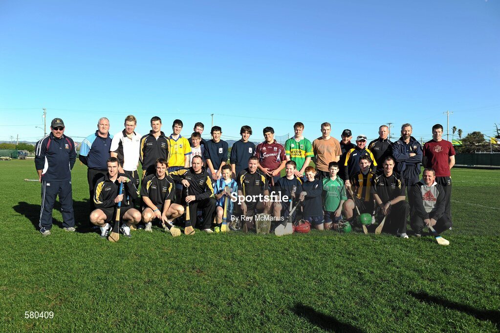3 December 2011; All-Stars with children from the San Francisco GAA Club and the Liam MacCarthy Cup after a coaching session organised as part of the tour. 2011 GAA GPA All-Stars Hurling Tour sponsored by Opel, Treasure Island, San Francisco, California, USA. Picture credit: Ray McManus / SPORTSFILE