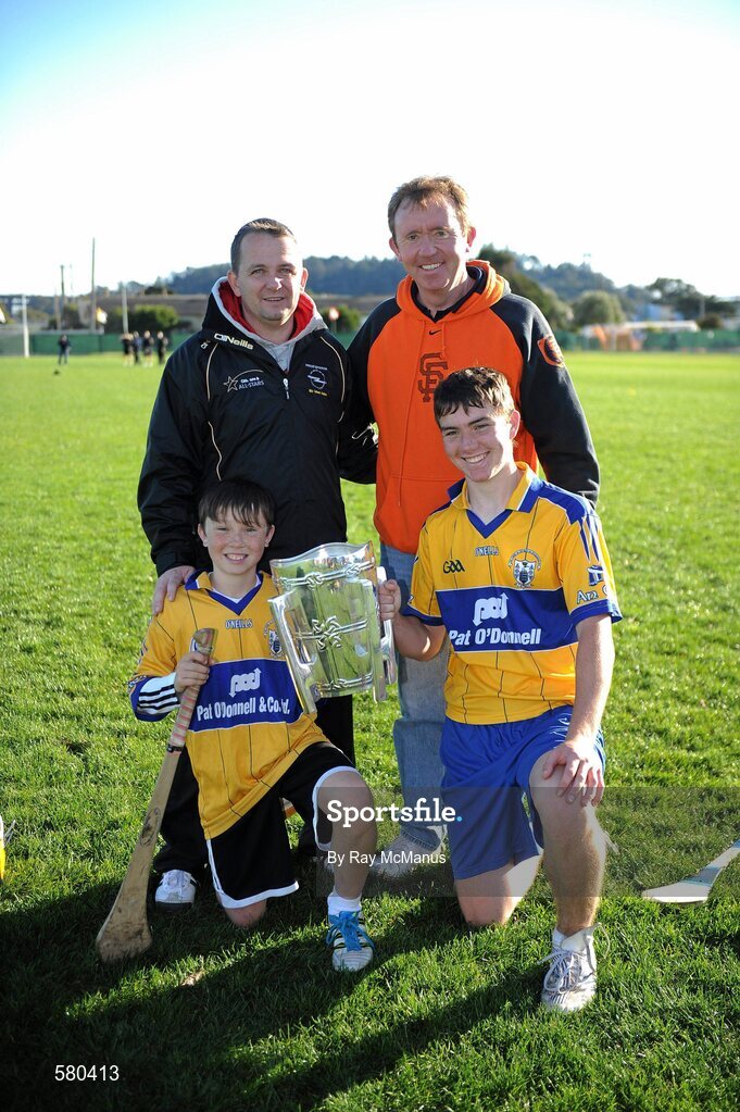 3 December 2011; Clare manager Davy Fitzgerald with Leo Cassidy, from Kilfinora, Co. Clare, and his two sons Conor, left, and Kevin from the San Francisco GAA Club, and the Liam MacCarthy Cup, after a coaching session organised as part of the tour. 2011 GAA GPA All-Stars Hurling Tour sponsored by Opel, Treasure Island, San Francisco, California, USA. Picture credit: Ray McManus / SPORTSFILE