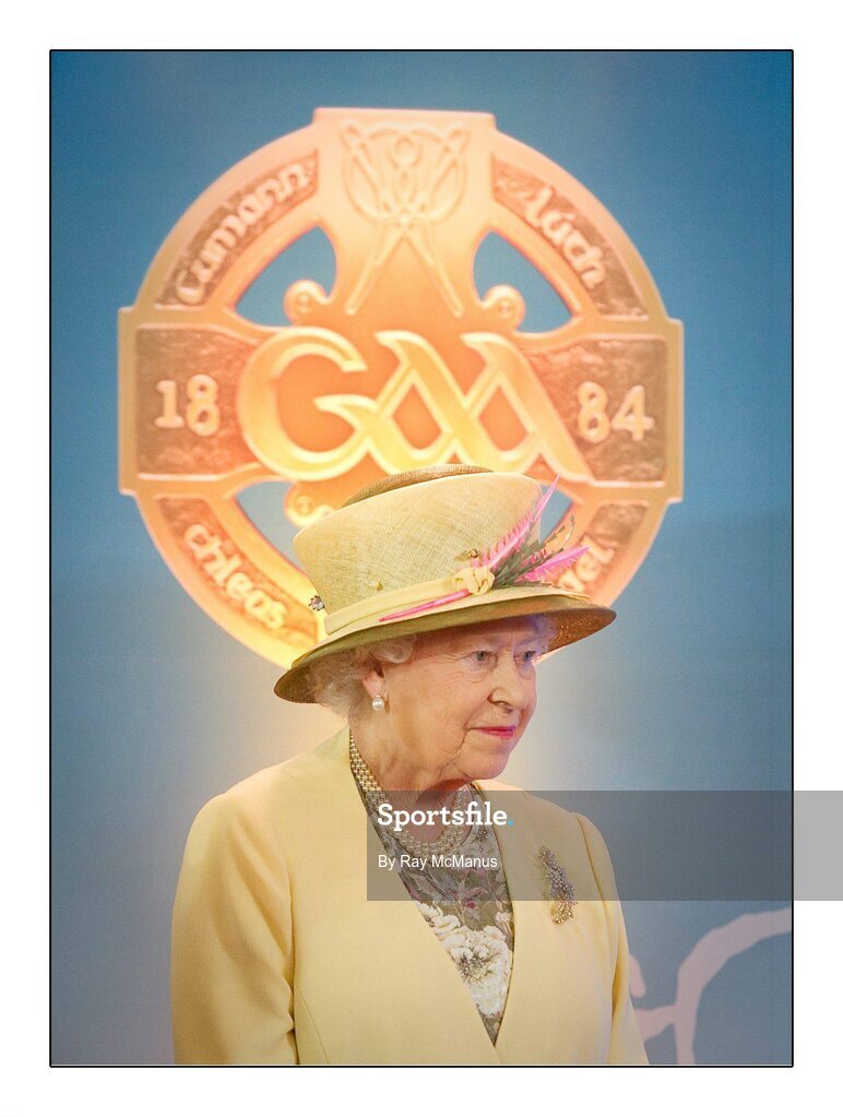 18 May 2011; HM Queen Elizabeth II listens intently to the speech made by Uachtarán CLG Criostóir Ó Cuana during her tour of Croke Park. State Visit to Ireland by HM Queen Elizabeth II and HRH the Duke of Edinburgh, Croke Park, Dublin. Picture credit: Ray McManus / SPORTSFILE