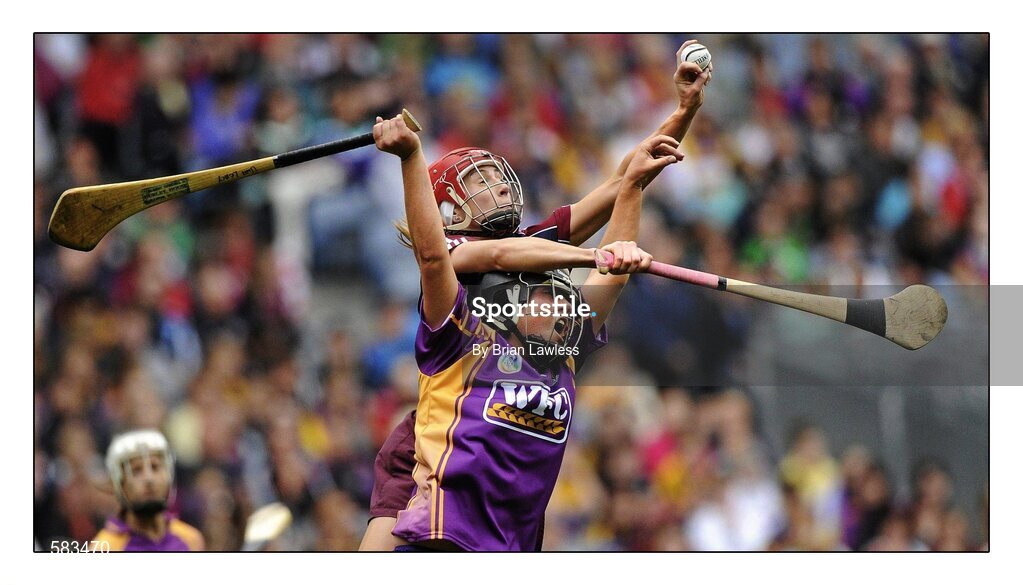11 September 2011; Therese Maher, Galway, in action against Una Leacy, Wexford. All-Ireland Senior Camogie Championship Final in association with RTE Sport, Galway v Wexford, Croke Park, Dublin. Picture credit: Brian Lawless / SPORTSFILE