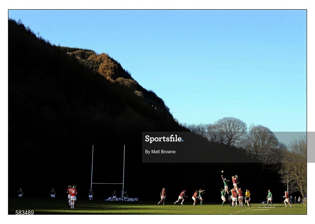 13 March 2011; Ireland's Marie Louise Reilly takes the ball in the lineout ahead of Shona Powell Hughes, Wales. Women's Six Nations Rugby Championship, Wales v Ireland, Cross Keys RFC, Gwent, Wales. Picture credit: Matt Browne / SPORTSFILE