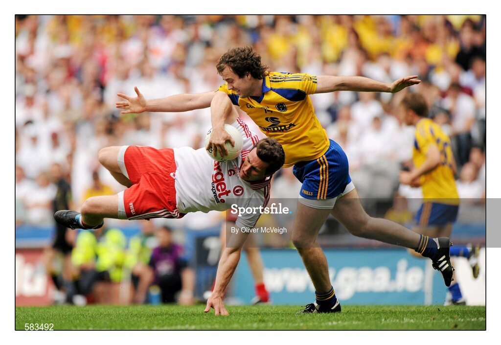 30 July 2011; Conor Gormley, Tyrone, in action against Senan Kilbride, Roscommon. GAA Football All-Ireland Senior Championship Qualifier, Round 4, Roscommon v Tyrone, Croke Park, Dublin. Picture credit: Oliver McVeigh / SPORTSFILE