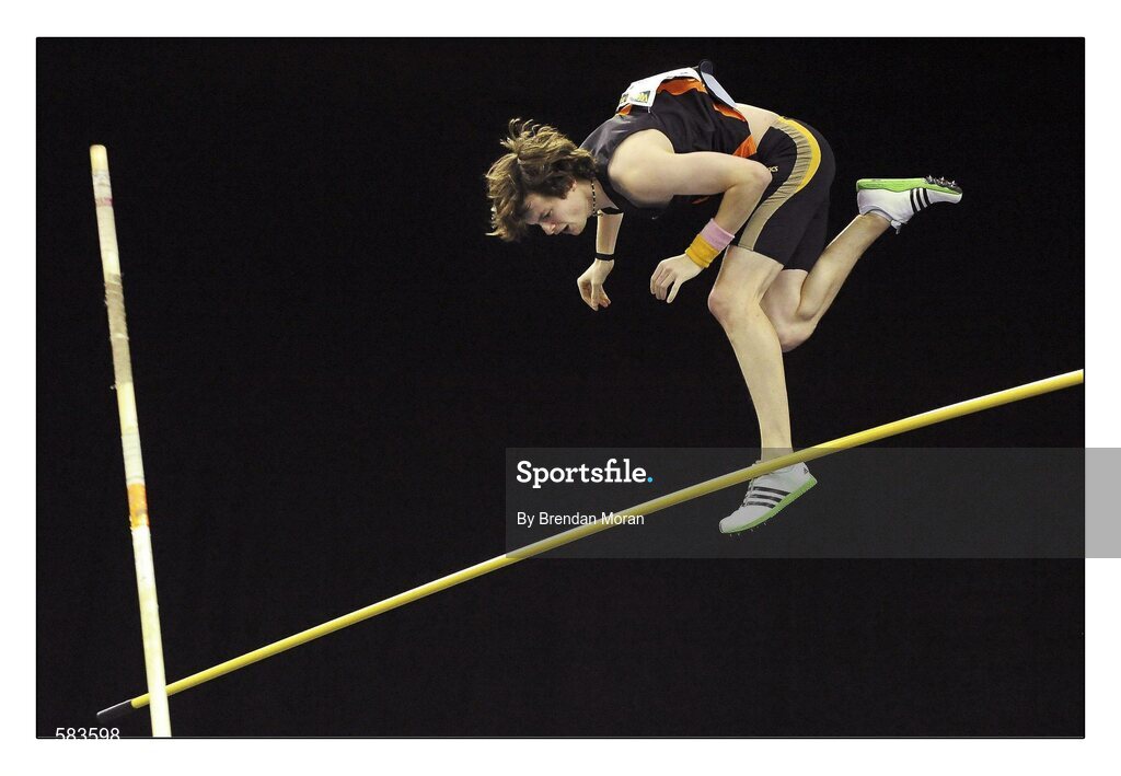 19 February 2011; Ian Rogers, Clonliffe Harriers AC, fails on his attempt at 4.70m in the Men's Pole Vault title. AAI Senior Indoor Athletics Championship, Odyssey Arena, Belfast, Co. Antrim. Picture credit: Brendan Moran / SPORTSFILE