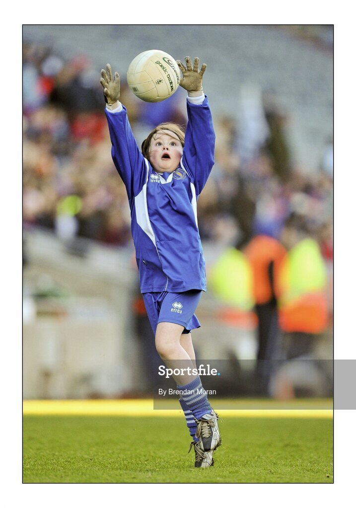 11 January 2011; Emma Brennan, Guardian Angels National School, Blackrock, reaches for a high ball in her game with Scoil Bhríde, Glasnevin. Allianz Cumann na mBunscol Football Finals, Corn Irish Rubies, Scoil Bhríde, Glasnevin, Dublin v Guardian Angels National School, Blackrock, Dublin. Croke Park, Dublin. Picture credit: Brendan Moran / SPORTSFILE